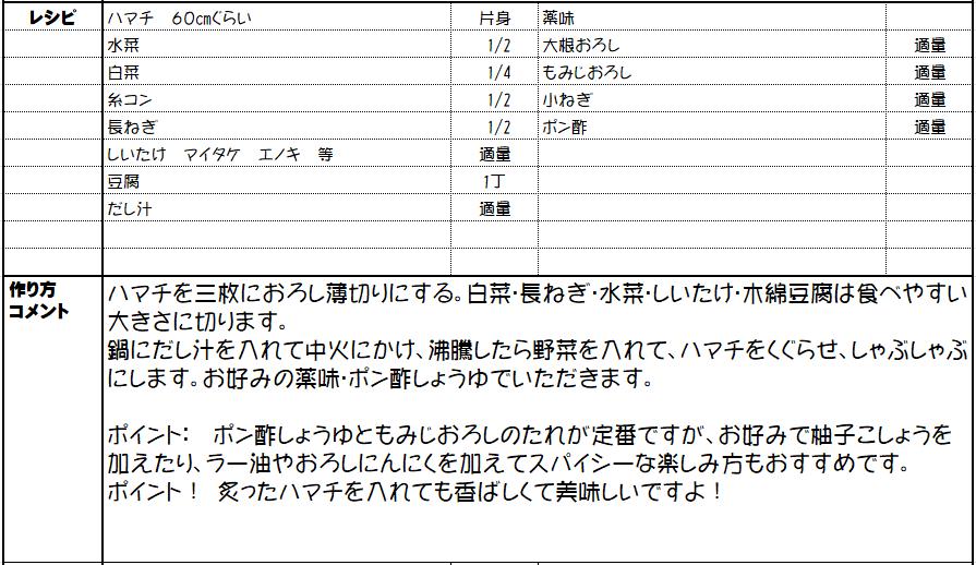 【入賞】 ハマチのしゃぶしゃぶ (2~3人分)