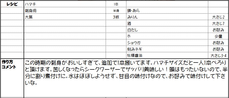 ハマチのお刺身・煮付け