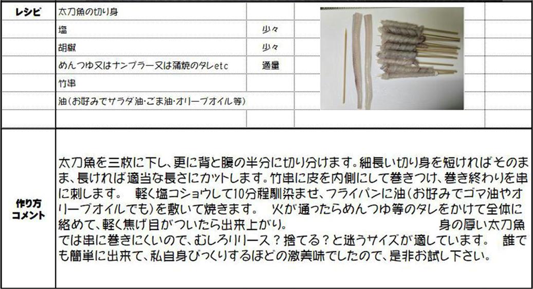 【金賞】 太刀魚のぐるぐる焼き